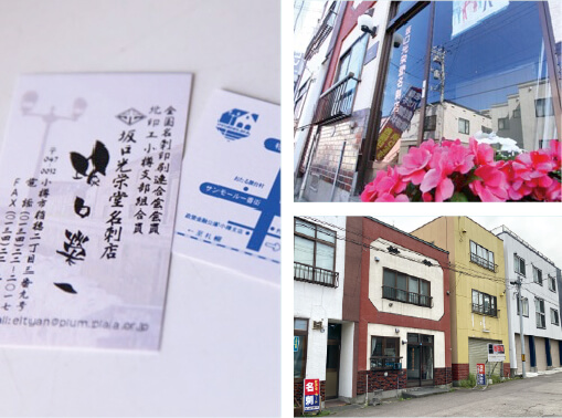 四月朔月、父母、蘭…。これらは人の名字(姓)ですが、どう読むかお分かりになるでしょうか。答えは「わたぬき」、「ふも・ふぼ・たらち(ね)」、「あららぎ」さん。名刺はとりわけ社交印刷物といわれる、ユーザーとの一番身近なものです。それだけに早くて美麗な印刷物を要求され、その場でユーザーの反応を感じ取られる製品を取り扱っている仕事に従事していると自覚しています。弊社は先代が昭和27年に創業し、今年で73年目を迎えました。この稲穂町にて二代目を継承しています。「あなたの第二の顔」でもある名刺で、これからも珍しい名字との出会いを楽しみにしています。